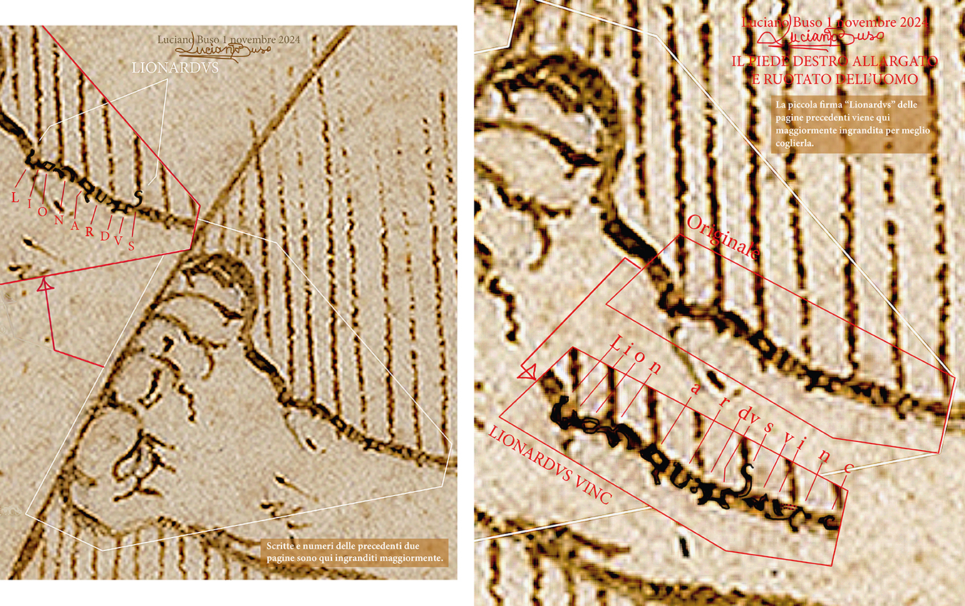 Essenziali pagine all'interno del volume da poco presentato "Leonardo da Vinci-Uomo Vitruviano-Nuovi studi scientifici", edizioni Grafiche Antiga 2025, a cura di Luciano Buso.